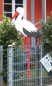 In vielen Gegenden ist es bei jungen Paaren üblich, nach der Ankunft eines Babys den Nachbarn und Freunden den Anlass durch das Aufstellen eines „Klapperstorchs“ bekanntzugeben.